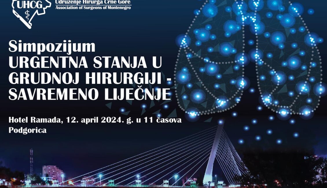 UHCG u saradnji sa Centrom za grudnu hirurgiju organizuje Simpozijum “Urgentna stanja u grudnoj hirugiji-savremeno liječenje”. Simpozijum će se održati u Hotelu “Ramada” u Podgorici, 12.aprila 2024.godine sa početkom u 11:00h.
